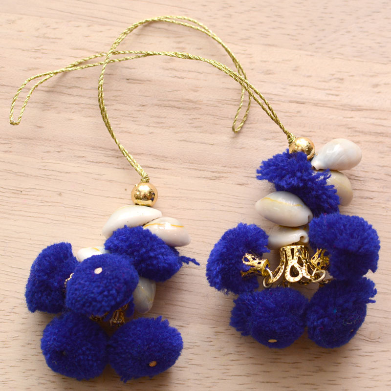 2 Blue Handmade Decorative Pom Pom Latkans by the yard-0027A Pair of Handmade Decorative Pom Pom Latkan. It is made with Thread work.These beautiful Latkan/Tassels can be used for: