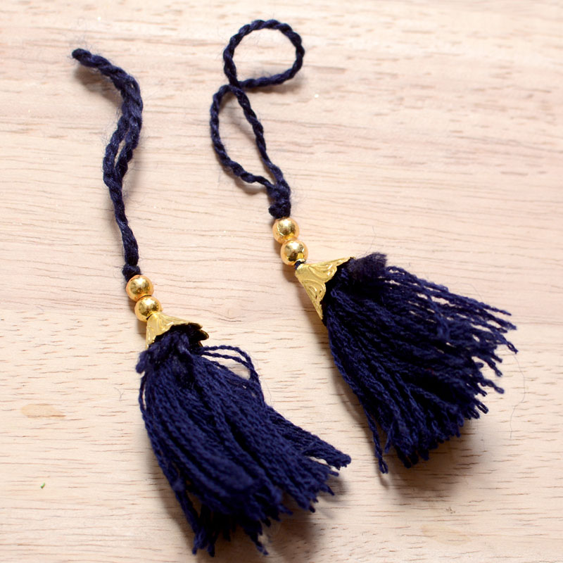 2 Blue Handmade Decorative Tassels by the yard-0008A Pair of Handmade Decorative Tassels. It is made with Thread work.These beautiful Latkan/Tassels can be used for: