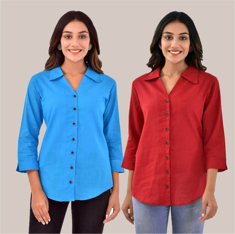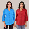 Product Code-Combo of 2 Blue and Maroon Cotton Slub Women 3/4 sleeves Shirt-38484