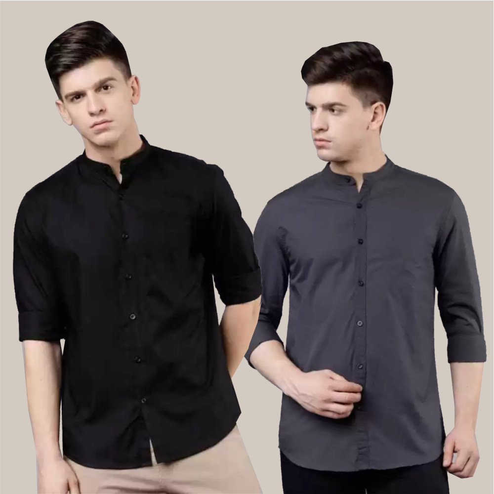 | Print Type | Slim Fit Solid Chinese Collar Casual Shirt |