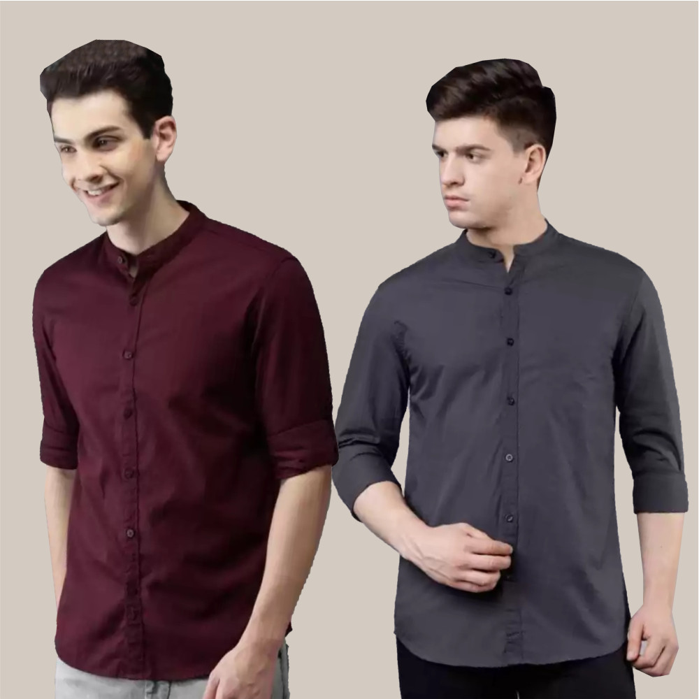 | Print Type | Slim Fit Solid Chinese Collar Casual Shirt |