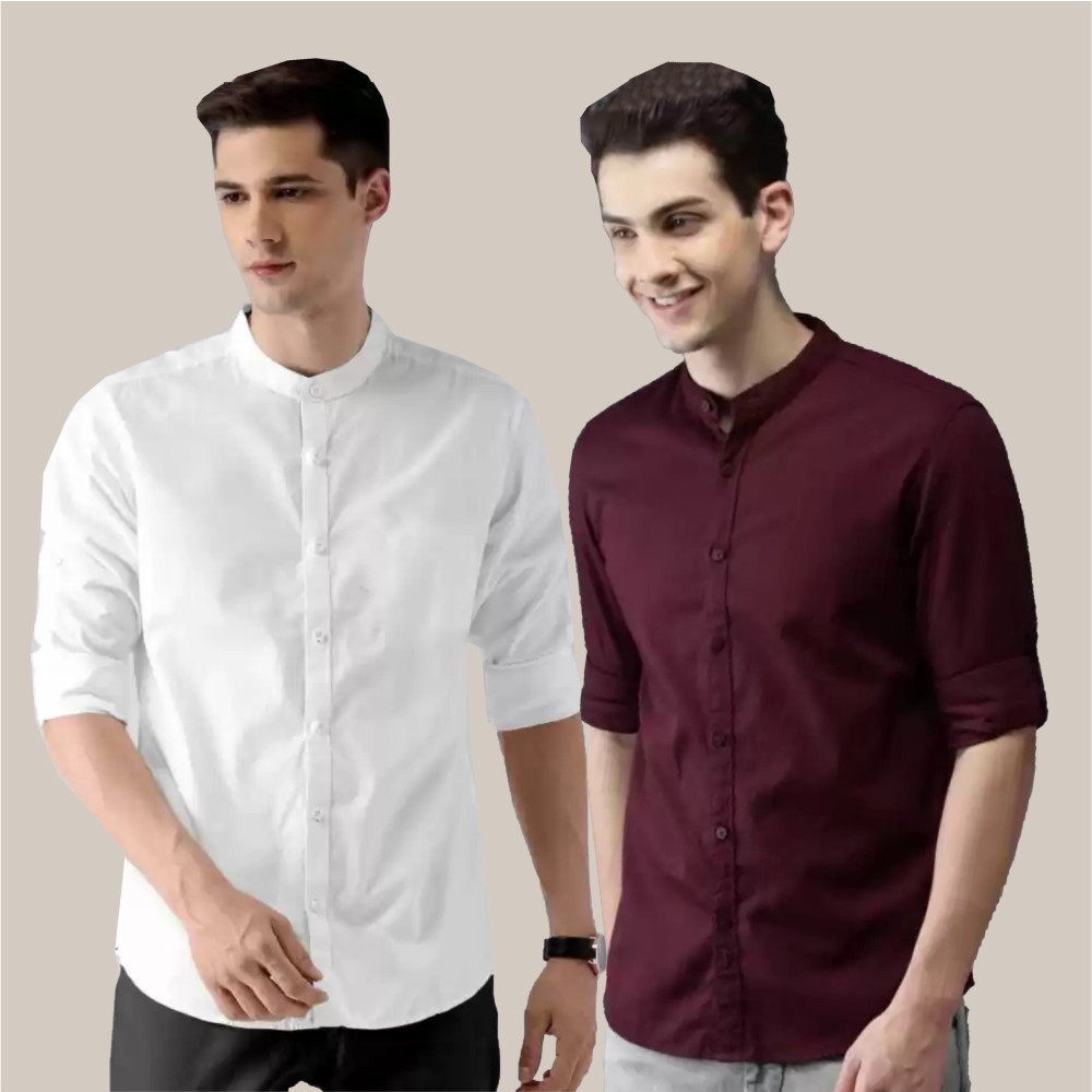 | Print Type | Slim Fit Solid Chinese Collar Casual Shirt |