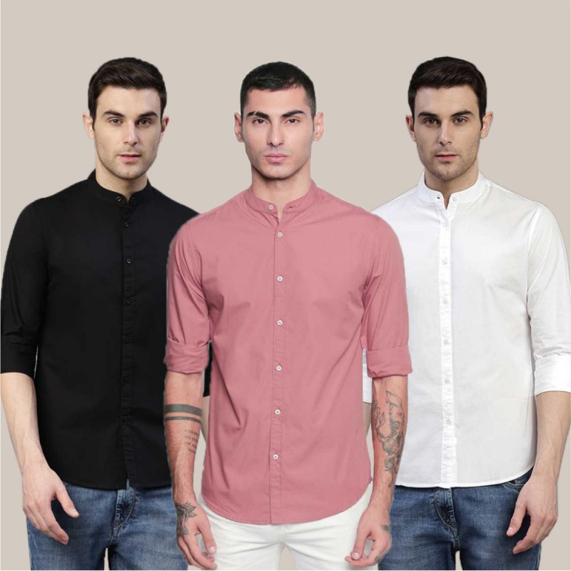 | Print Type | Slim Fit Solid Mandarin Collar Casual Shirt |