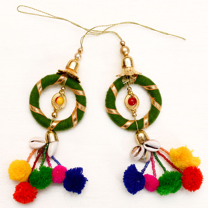 2 Decorative Green Circular Pattern with Handmade Pom Pom-0042A Pair of Handmade Pom Pom Tassel. It is made with Thread work.These beautiful Latkan/Tassels can be used for: