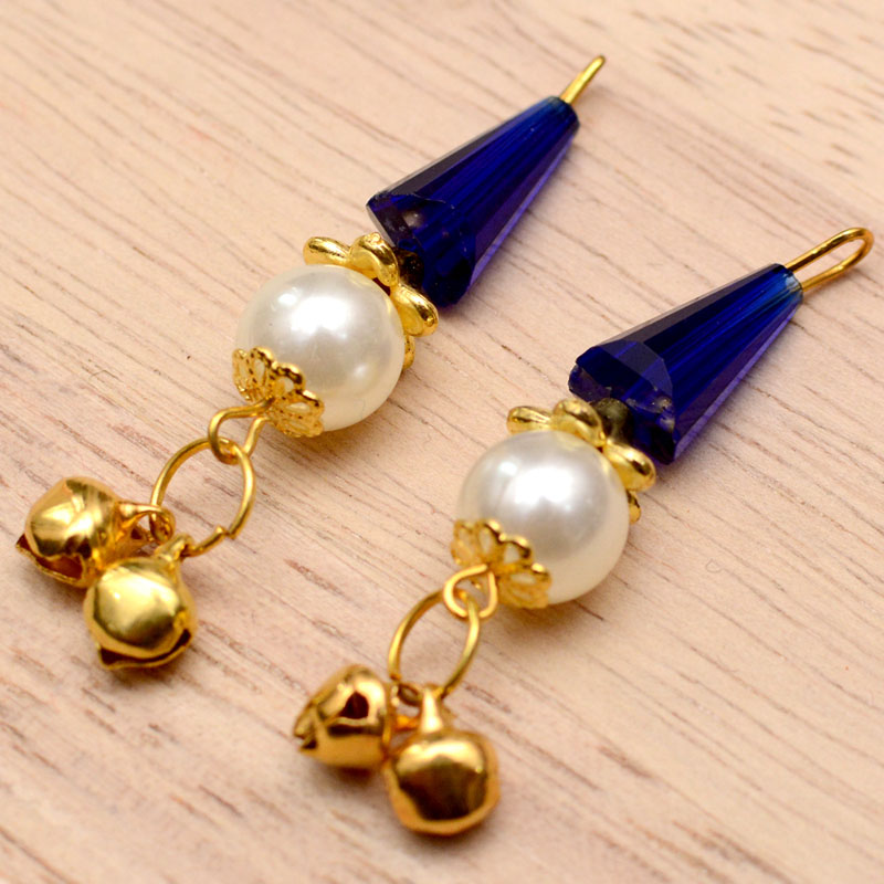 2 Decorative Handmade Hanging Bells with Dark Blue Stones-0086A Pair of Handmade stone Latkan. It is made with Pearl work.These beautiful Latkan/Tassels can be used for: