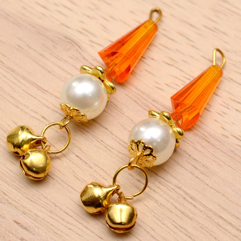 2 Decorative Handmade Hanging Bells with Orange Stones-0087A Pair of Handmade stone Latkan. It is made with Pearl work.These beautiful Latkan/Tassels can be used for: