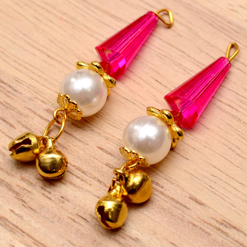 2 Decorative Handmade Hanging Bells with Pink Stones-0082A Pair of Handmade stone Latkan. It is made with Pearl work.These beautiful Latkan/Tassels can be used for: