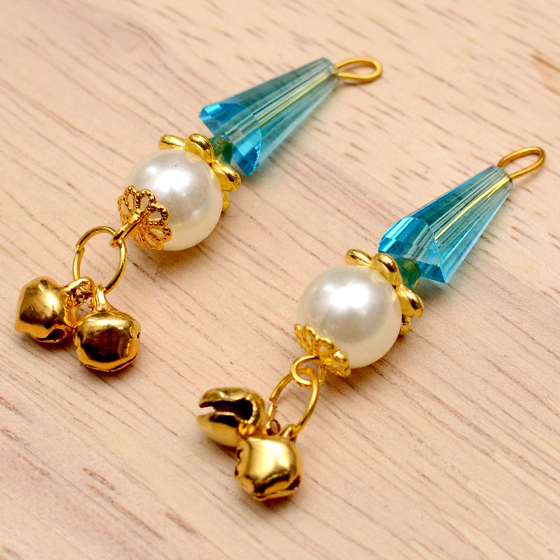 2 Decorative Handmade Hanging Bells with Sky Blue Stones-0084A Pair of Handmade stone Latkan. It is made with Pearl work.These beautiful Latkan/Tassels can be used for: