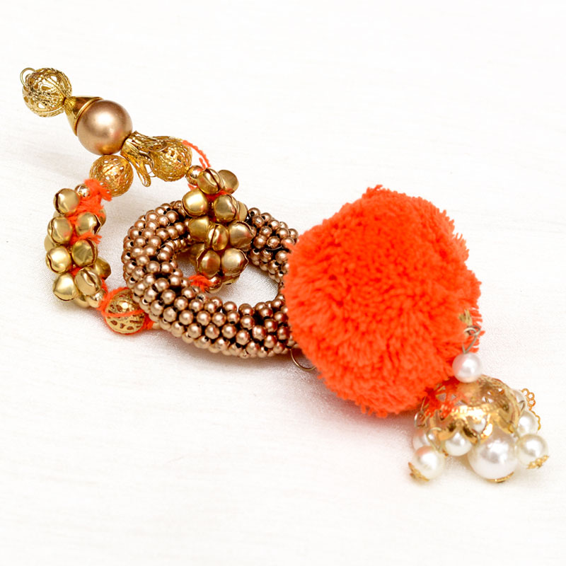 2 Decorative Handmade Twice Circular Design with Orange Latkans-0053A Pair of Handmade Pearl Tassel. It is made with Pearl work.These beautiful Latkan/Tassels can be used for: