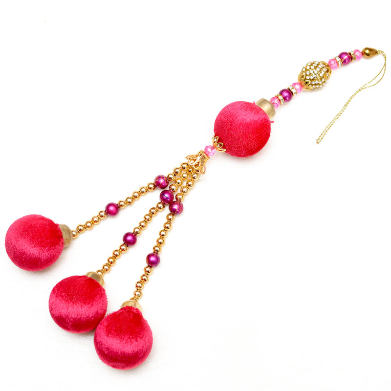 1 Golden Decorative Latkans with Pink Pom Pom-0045Handmade Pom Pom Tassel. It is made with Pearl work.These beautiful Latkan/Tassels can be used for: