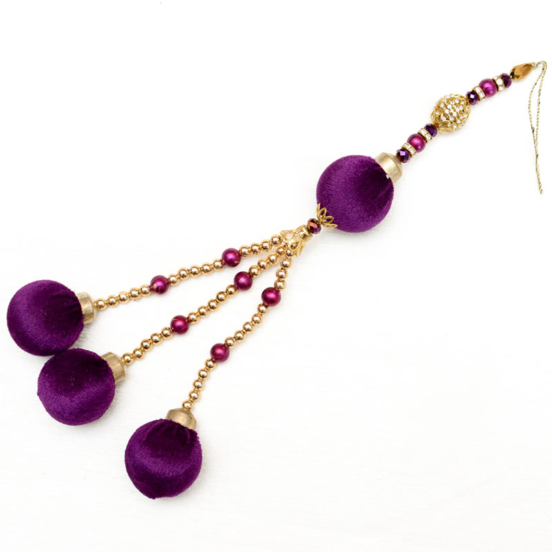 1 Golden Decorative Latkans with Purple Pom Pom-0046Handmade Pom Pom Tassel. It is made with Pearl work.These beautiful Latkan/Tassels can be used for:
