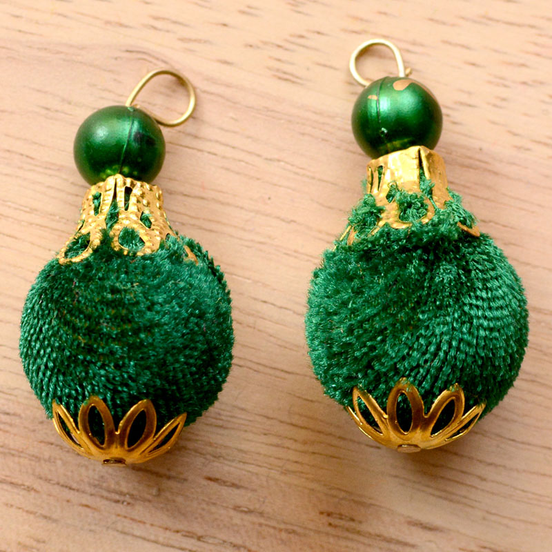 2 Handmade Pom Pom Decorative Latkans with Green Pearls-0074A Pair of Handmade Pom Pom and Pearl Tassel. It is made with Pearl work.These beautiful Latkan/Tassels can be used for: