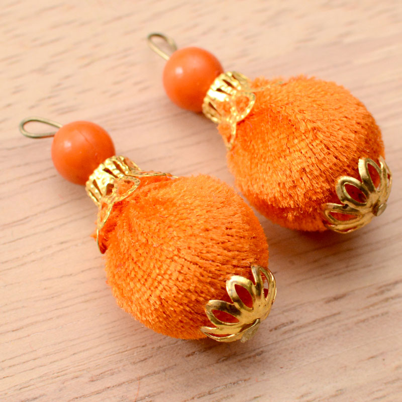 2 Handmade Pom Pom Decorative Latkans with Orange Pearls-0076A Pair of Handmade Pom Pom and Pearl Tassel. It is made with Pearl work.These beautiful Latkan/Tassels can be used for: