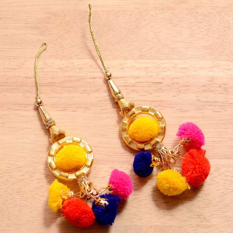 2 Multicolor Handmade Pom Pom Latkans by the yard-0003A Pair of Pom Pom Latkans. It is made with Thread work.These beautiful Latkan/Tassels can be used for: