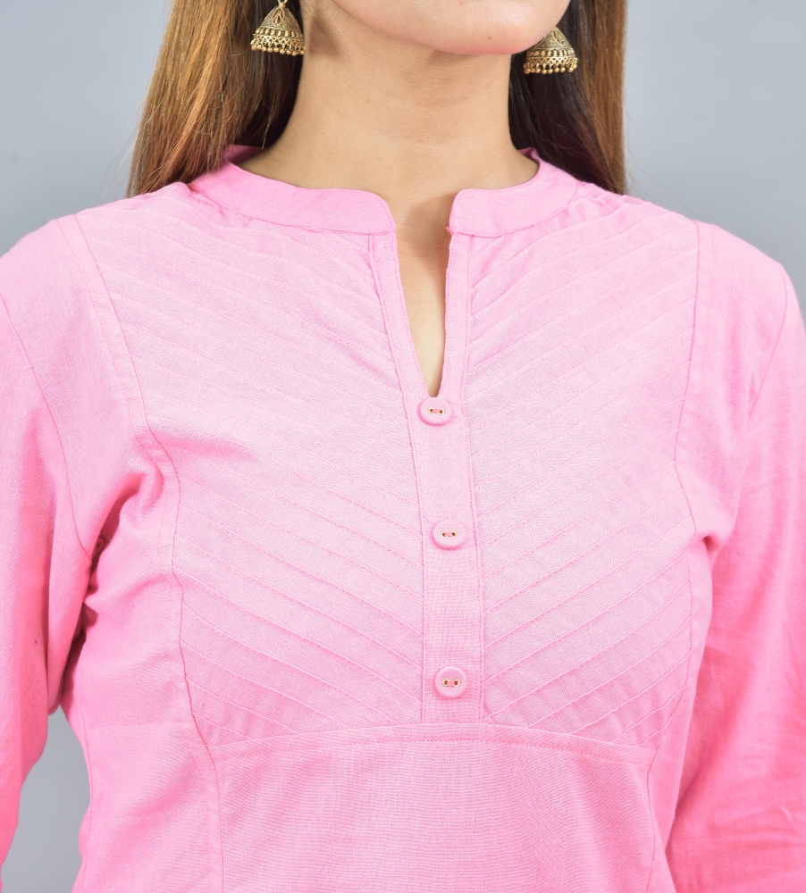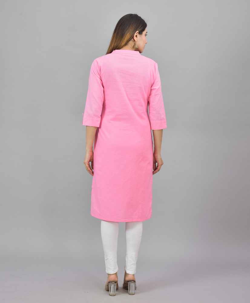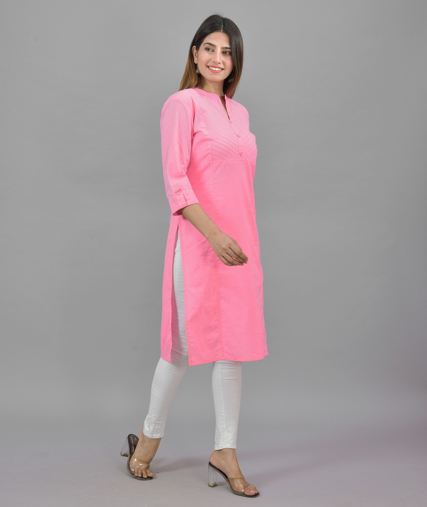 Product Code-Pink Cotton Solid Women Straight Kurta-44298