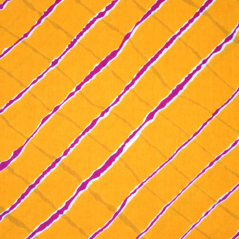This Yellow and Pink Leheriya Fabricis made from 100% cotton with thread knot of 60X60. Width of this Yellow and Pink Leheriya Screen Print fabric is 110 centimeter or 44 inches. It is recommended to wash fabric in cold water.